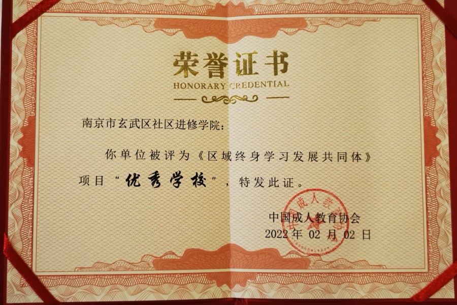 南京市玄武区社区进修学院被评为国家级“区域终身学习发展共同体”项目“优秀学校“