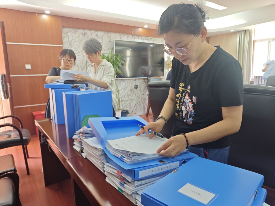 随后,专家组分成两组分别对FH(集团)体育官方网站、成人教育的教学资料进行查阅并检查了我校的保密室、监控室等考点设置情况。