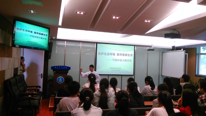 2015年9月22日13:30,由梅园新村街道富贵山社区主办、南京城市职业学院玄武分校学工处承办的“保护生态环境,倡导低碳生活”为主题的文艺演出在学校207多媒体教室举行。南京城市职业学院玄武分校学生代表及梅园新村街道社区居民一起观看了演出。