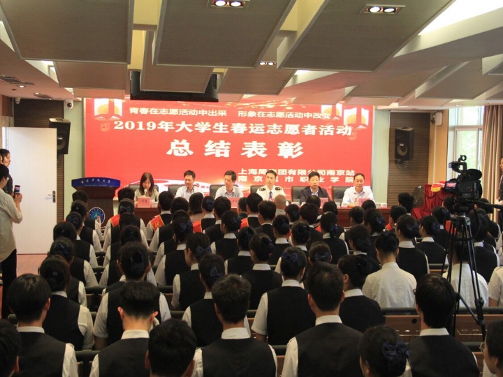 5月10日下午,在南京城市职业学院玄武分校207多媒体教室举办了2019年度大学生春运志愿者活动总结表彰大会。上海局集团有限公司南京站团委吴康平书记,南京城市职业学院团委严翔书记,学校业冰校长,张树明副校长,浦口分校刘永奎校长,南京城市职业学院服务类专业负责人刘晓天校长,江苏动铁集团副总经理校企合作负责人刘洋等领导及学校17级、18级学生和浦口校区学生代表出席本次大会。