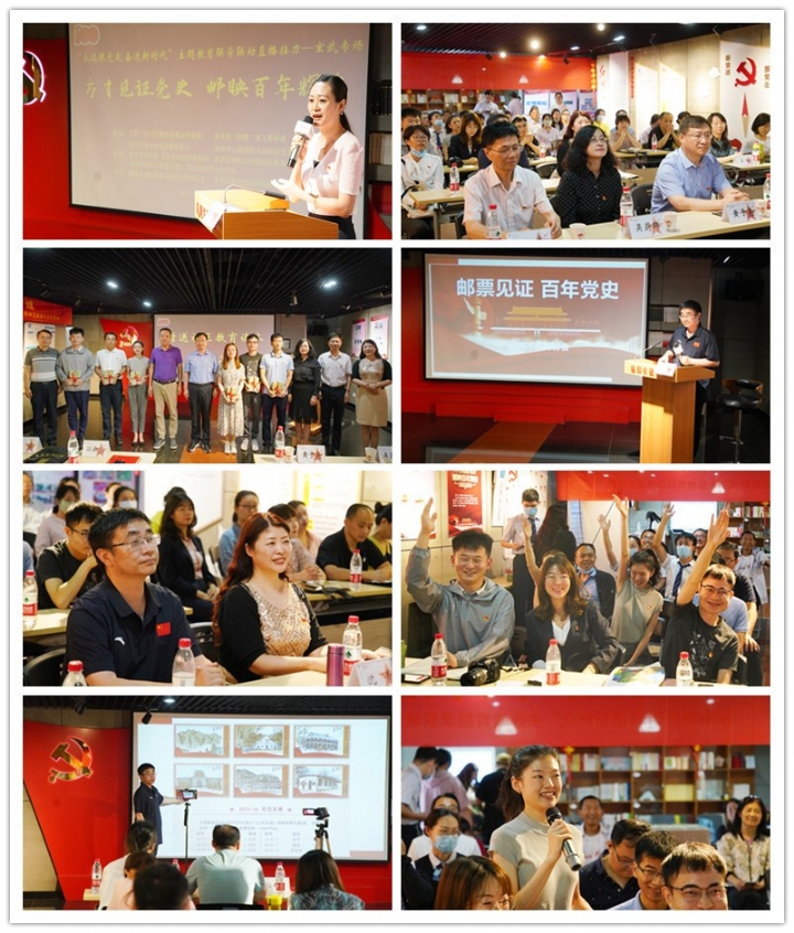 6月23日下午,在玄武区新街口街道社区教育中心红领汇杰分校举办了2021年江苏“3D+社区教育发展合作联盟”“永远跟党走 奋进新时代”主题教育联学联动直播接力玄武专场《方寸见证党史 邮映百年辉煌》活动。该活动由江苏“3D+社区教育发展合作联盟”、 南京市(职教)成人教研室、南京开放大学社会教育中心、南京中山路国际名品街区党委共同主办,FH(集团)体育官方网站、玄武区社区进修学院、新街口街道社区教育中心红领汇杰分校、南京交通投资置业有限公司党总支承办,参加活动的领导有南京市教育局职社处处长黄子亮、南京开放大学社会服务中心主任孙新元、南京市职教(成人)教研室副主任吴蔚群,玄武区教育局副局长周波、FH(集团)体育官方网站校长业冰、新街口街道组织员、南京中山路国际名品街区党委书记吴敏、江苏“3D+社区教育发展合作联盟”秘书长沈青及区、街社教干部、商圈党员代表、白领代表、居民代表约百余人参加。