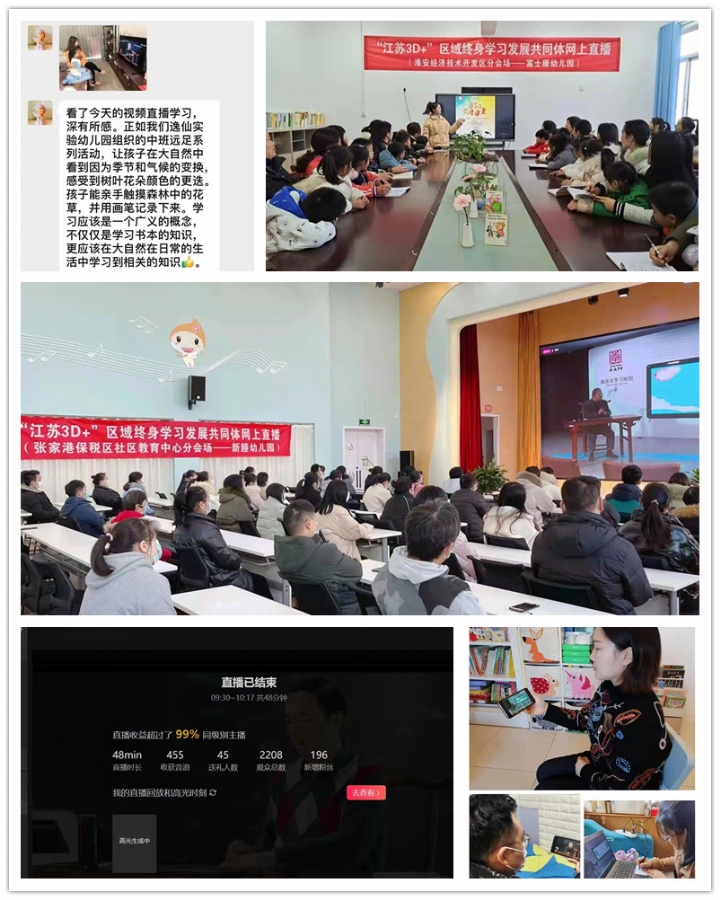 本次直播,既是“85后父母学堂”品牌实践的一次创新之举,也是进一步扩大了品牌的影响力,据了解当天线上,惠及来自全国“江苏3D+” 区域终身学习发展共同体及“长三角终身学习云视课堂协同发展共同体”成员单位合肥开放大学、台州社区大学等幼儿家长参与线上学习,更多的年轻家长了解品牌,从中受益。直播活动线上参与约数千人近万人点赞,得到广大幼儿家长的好评。