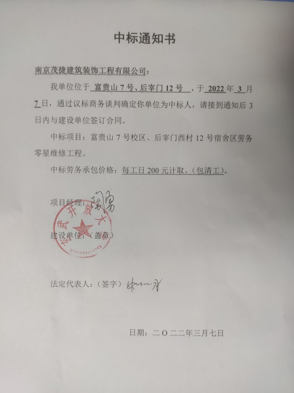 中标通知书