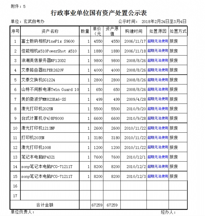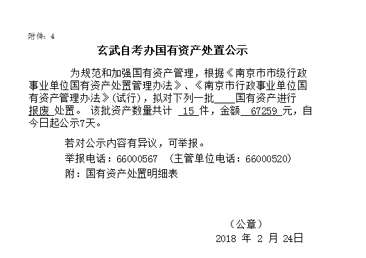 玄武自考办国有资产处置公示