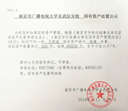 南京市广播电视大学玄武区分校国有资产处置公示