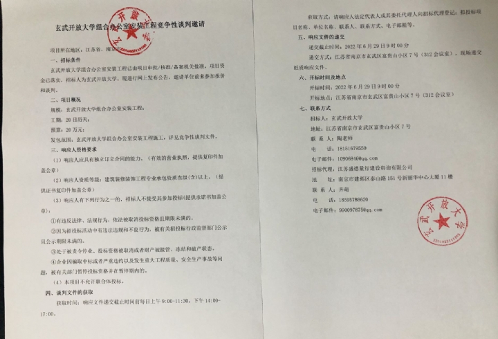 FH(集团)体育官方网站组合办公室安装工程竞争性谈判邀请