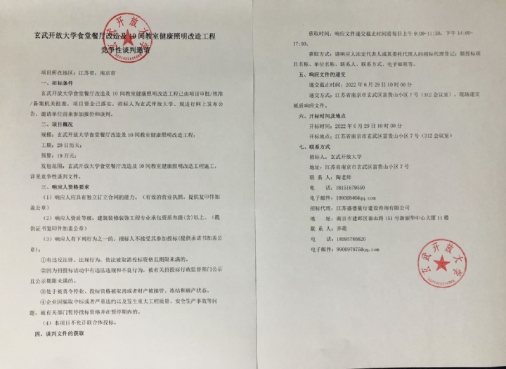 FH(集团)体育官方网站食堂餐厅改造及10间教室健康照明改造工程竞争性谈判邀请