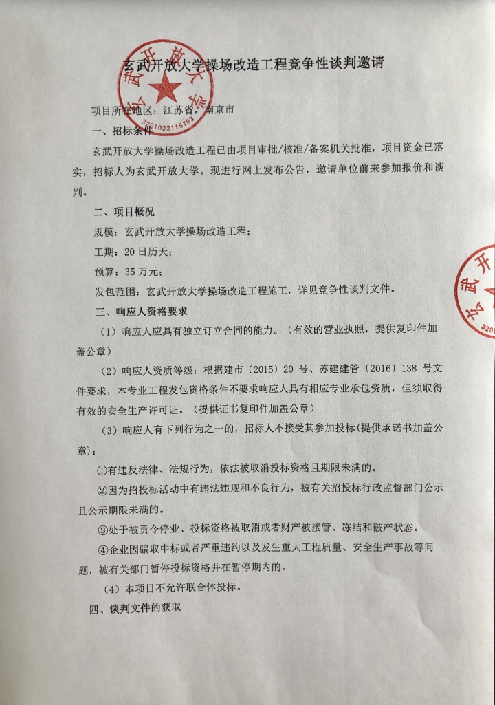 FH(集团)体育官方网站操场改造工程竞争性谈判邀请
