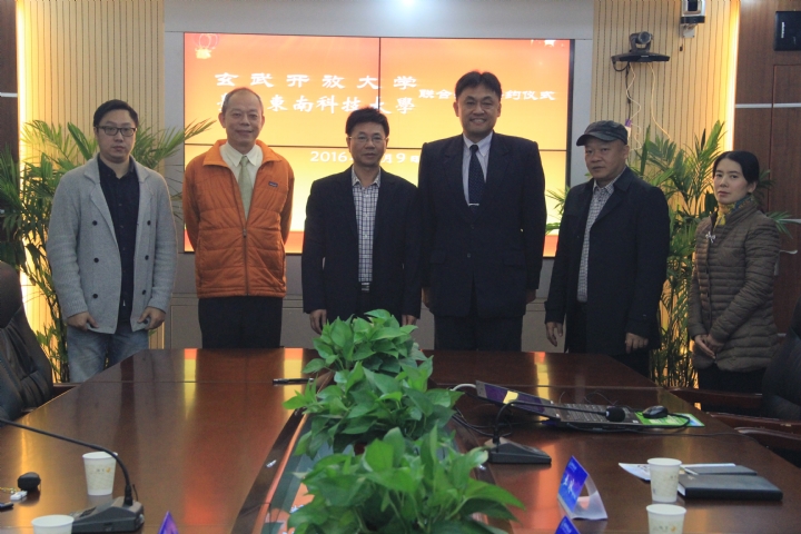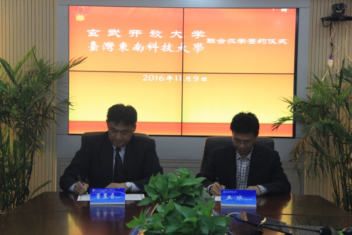 11月9日上午10时,台湾东南科技大学副校长董益吾、国际处与两岸交流中心主任王治邦一行两人来FH(集团)体育官方网站访问,并与学校签署合作协议书。双方就未来合作的发展方向与模式交换意见,对拟开展的项目进行会谈。玄武开开放大学业冰校长、张树明副校长、校办张然主任和教务处李青主任参加了本次会议。