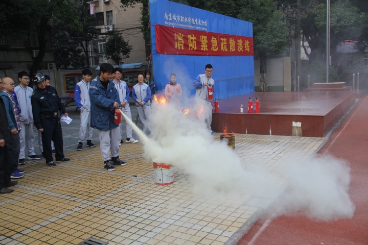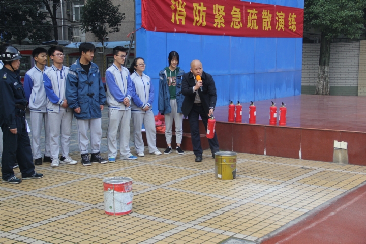 随后,学校安排了消防灭火演习。张校长亲身示范灭火器的使用方法,讲明在遇到火灾的情况下如何迅速打开消防箱,采用正确方法使用灭火器在短时间内扑灭火源。各班选派住宿生学生代表亲身参加灭火演练,熟悉灭火器的使用。