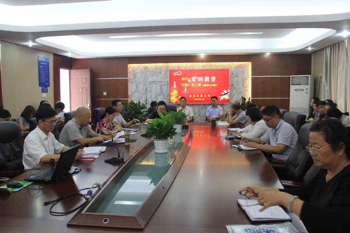 会上,首先播放了军训视频和教师节当天的庆祝活动视频。随后,张树明副校长宣读了表彰决定对在2017—2018学年涌现出来的18名优秀教职工给予了表彰奖励。最后,业冰校长代表学校向广大教职员工致以节日的问候和崇高的敬意,并做了“践行爱的教育,打造仁爱之师”的讲话,鼓励老师们要在新学年对学生要有“仁爱”之心,加强师德建设。