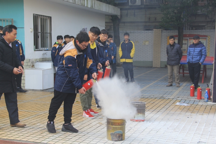 随后,总务处陶勇主任向全校师生示范了灭火器的使用方法,讲解怎样进行现场扑救,强调灭火器使用过程中的注意事项。学校住宿生代表进行了消防灭火演练,按照使用规范操作灭火器。