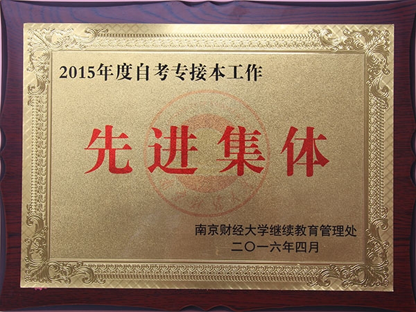 近日,FH(集团)体育官方网站荣获2015年度自考专接本工作“先进集体”称号,这是学校连续四年获此殊荣。4月27日下午,在南京财经大学召开的2015年度自考专接本工作总结大会上,我校被南京财经大学继续教育管理处授予2015年度自考专接本工作“先进集体”奖牌。